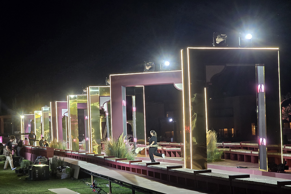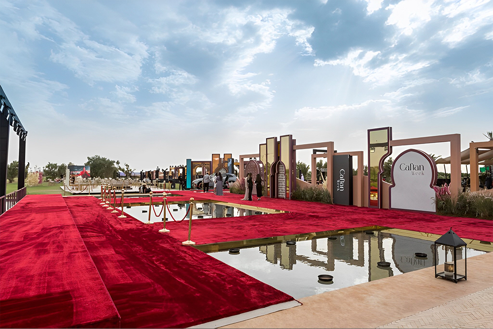 Le podium principal de la Caftan Week 2024 a été conçu comme un élément architectural fort, mettant en scène les défilés dans un espace à la fois artistique et structuré. Caractérisé par ses grandes portelles décoratives et sa présence monumentale, le podium alliait esthétisme, fonctionnalité et symbolique culturelle. Chaque détail a été pensé pour créer une scène prestigieuse, capable de sublimer les créations des stylistes tout en assurant un déroulement fluide et sécurisé des présentations.