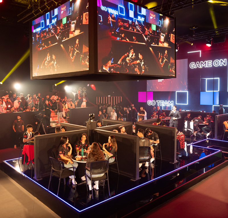 L’espace scénographique créé pour la Gaming Expo 2024 plonge les visiteurs dans un univers immersif dédié à la culture vidéoludique. Le projet s’est articulé autour de structures modulables, d’éléments lumineux interactifs et d’un design inspiré des tendances futuristes du gaming. Pensé pour accueillir démonstrations, compétitions et animations, cet aménagement offre une expérience engageante et visuellement percutante, tout en respectant les exigences techniques d’un événement high-tech de grande ampleur.